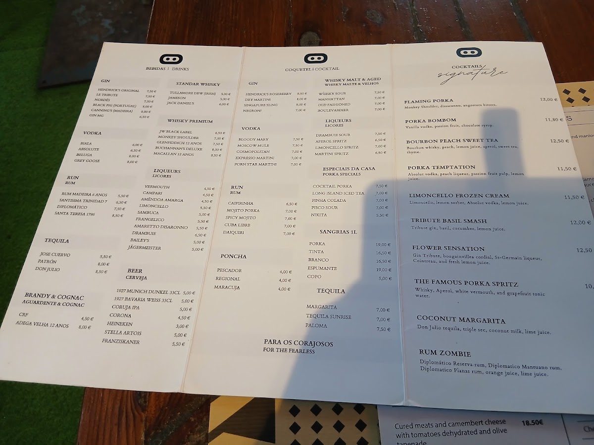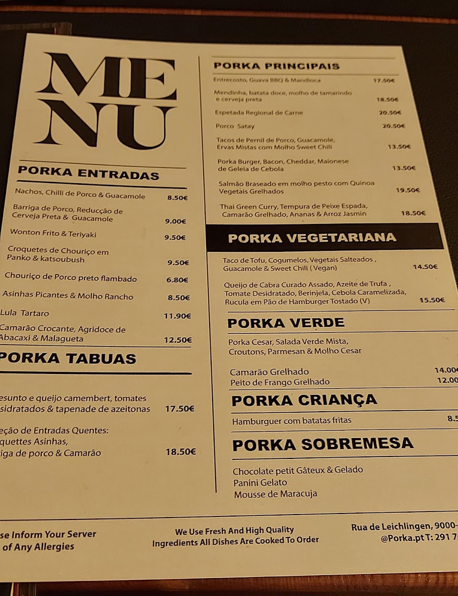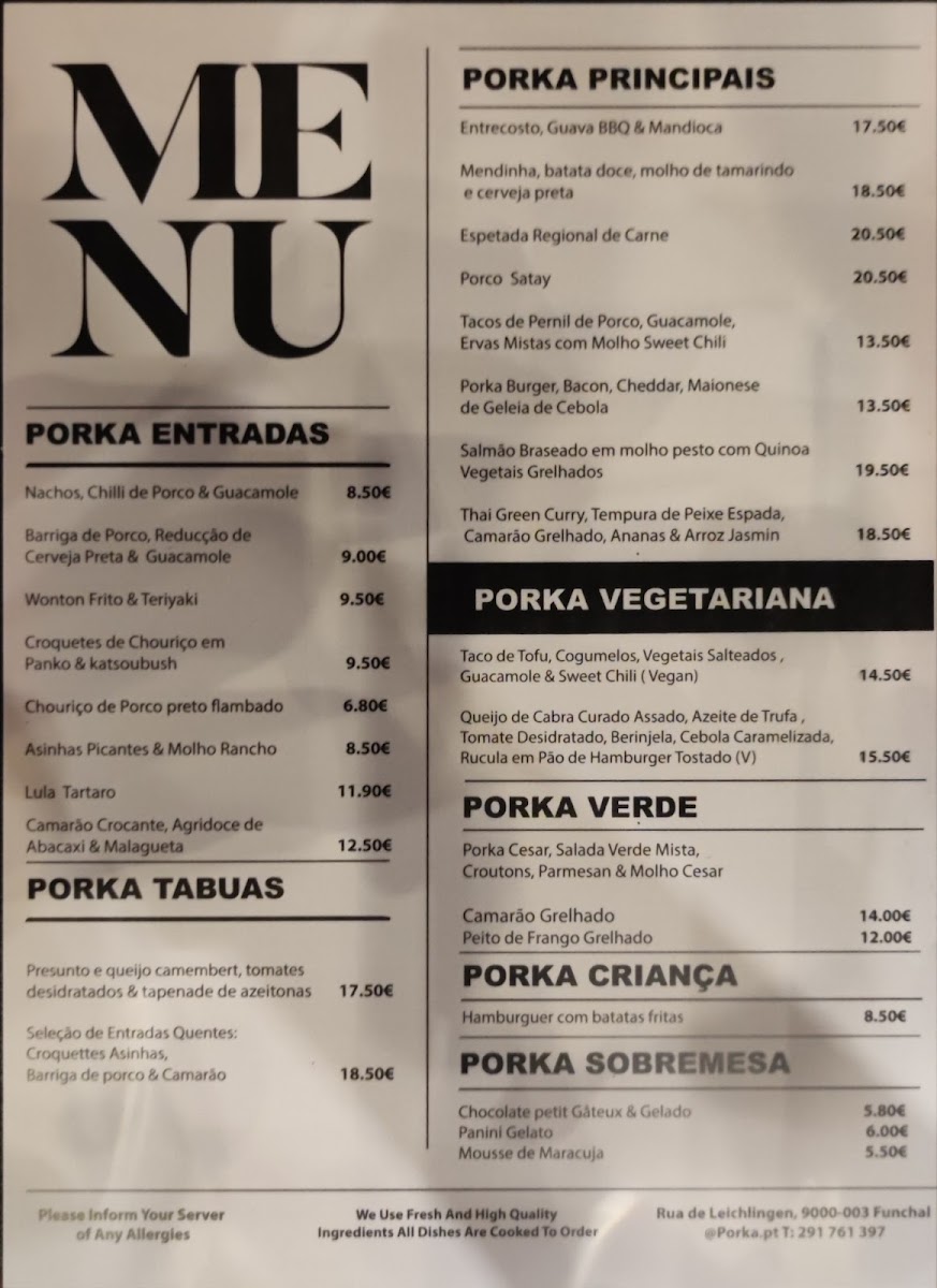 The menu at Porka offers a relaxed blend of casual bites and comforting drinks, perfect for gatherings that mix good food with easy conversation. Whether you’re settling in for a laid-back lunch, enjoying a vibrant evening with friends, or stopping by for a well-crafted cocktail, the selection adapts effortlessly to the atmosphere of this welcoming spot in Funchal.
